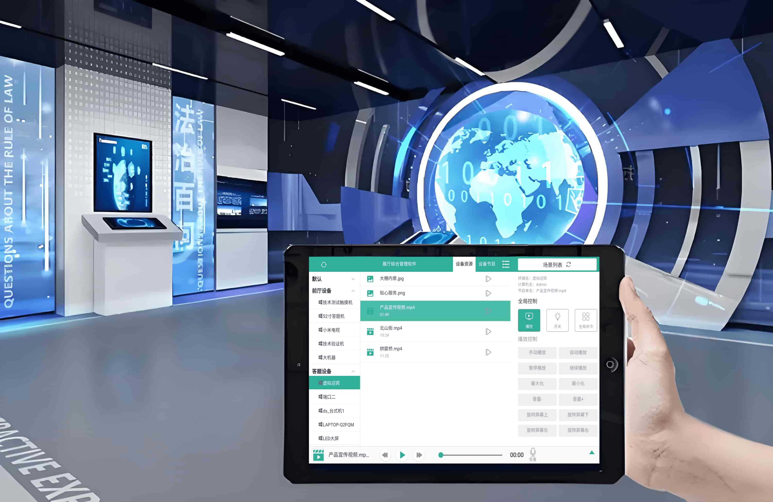 智能中控软件把展厅、会议室、企业展示区或任何多媒体场景里的灯光、投影、拼接屏、音响、互动一体机、窗帘和摄像头等设备集中到一个可视化界面上统一管理,让日常操作从来回...