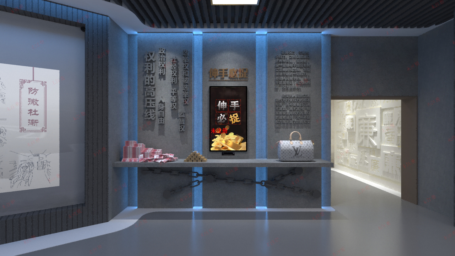伸手必捉互动警示系统围绕廉洁自律与法治教育场景设计,通过技术手段引导体验人员在真实互动中理解纪律边界与法律后果,系统采用Unity3D技术开发,整体画面清晰直观,运行逻辑稳...
