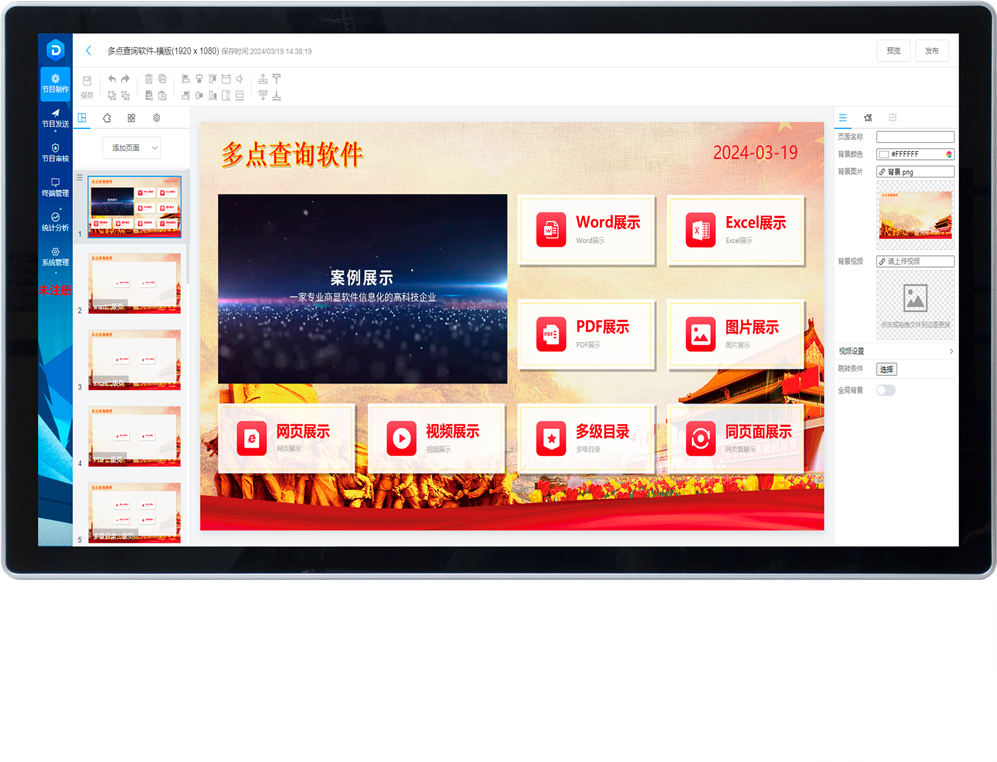 云平台信息发布系统是一种采用国产化操作系统开发的实用云端信息发布展示平台,能够在麒麟、信创、兆芯、飞腾等国产化系统平台上兼容运行,使用方式简单,展示形式丰富,功能...